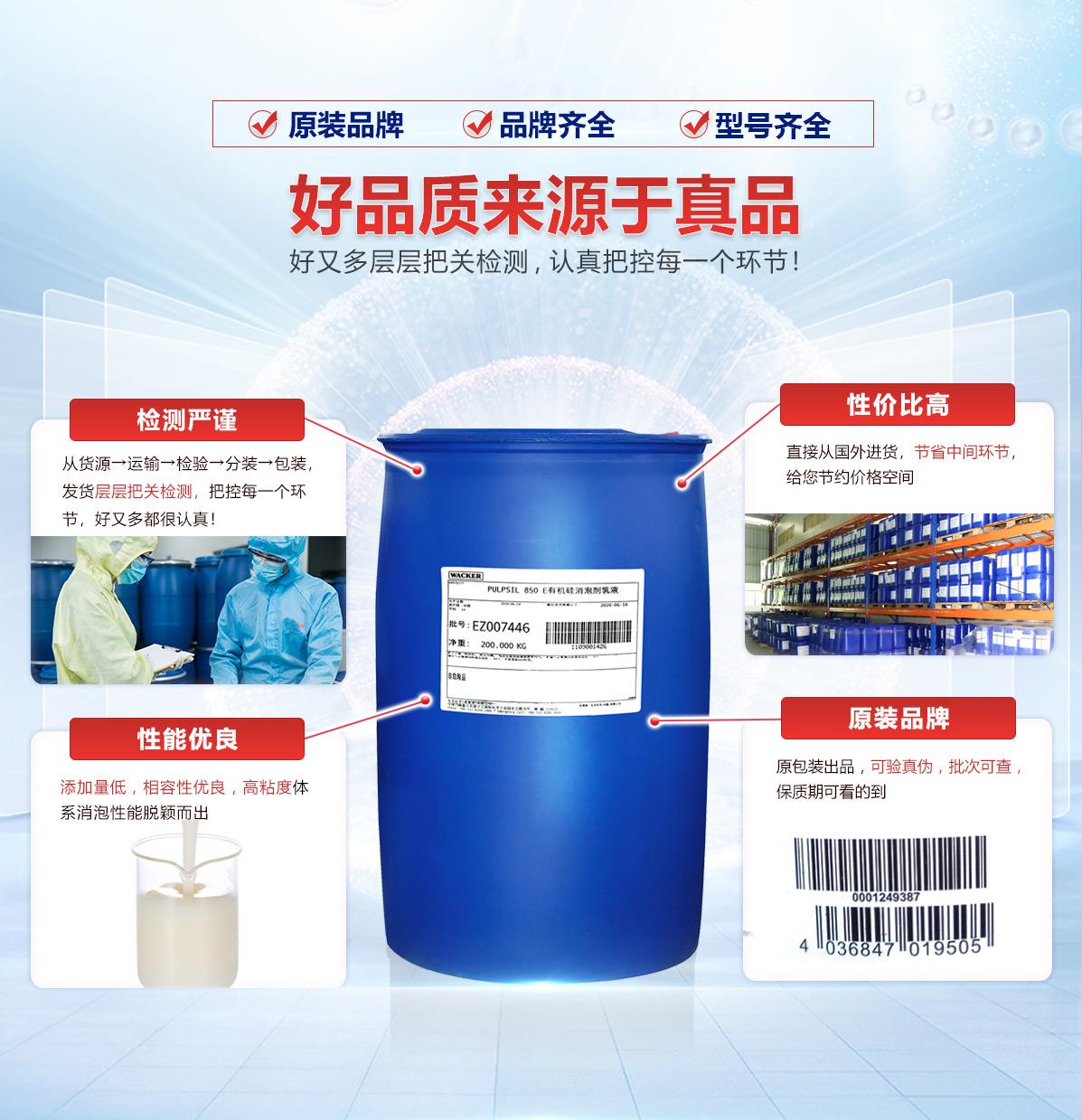 | 油田助剂消泡剂 | 在较低浓度下能保持很好的消抑泡效果 | 德国 | 20KG桶装 | 12个月 |
