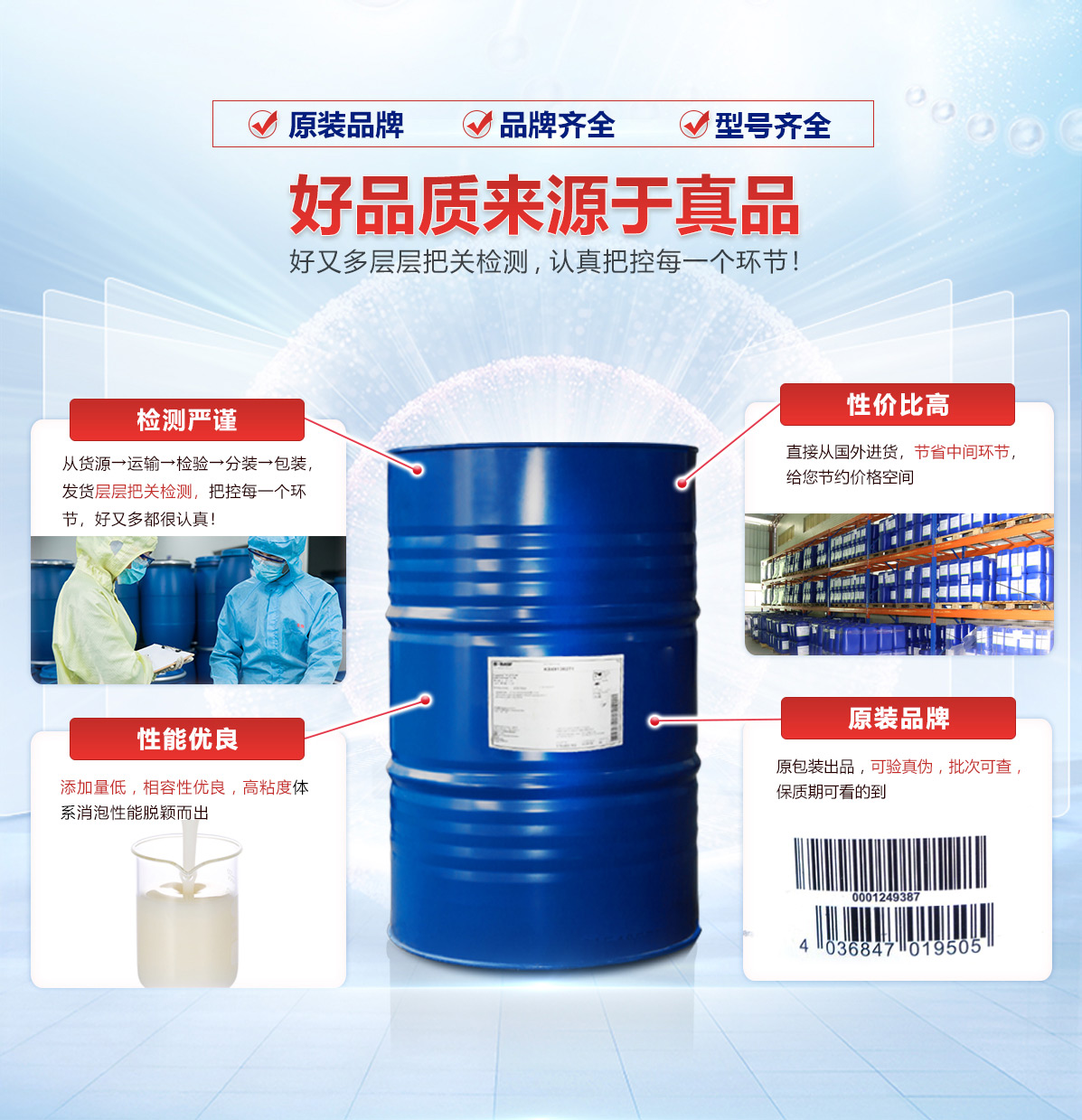 | 喷淋清洗消泡剂 | 具有优良的抗泡性能,消除细小泡沫,不错的消泡和抑泡剂 | 德国 | 20KG桶装 | 24个月 |